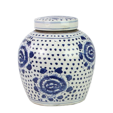 The Peony Dots Ming Jar is a beautiful decorative piece. This unique jar is hand crafted, hand made, and hand painted with care. Made from high-fir...