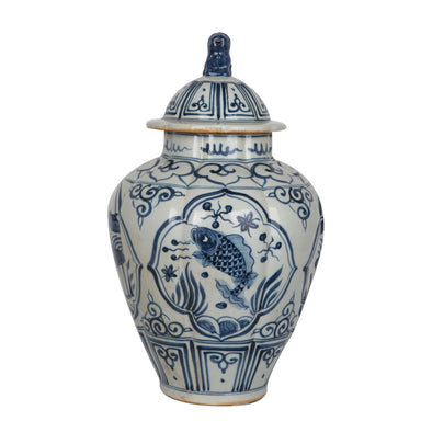 The Lotus Fish Ridged Jar is a unique piece for your decorative needs. This jar is hand made and hand painted, using highfire porcelain. It is an a...