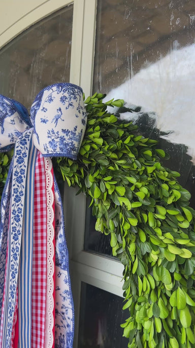 A fresh take on patriotic style with a hint of timeless blue-and-white charm. Patriotic Chinoiserie Wreath Ribbon blends classic Americana with ele...