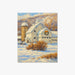 A warm holiday glow settles over the snow-covered barn as evening light brushes the valley in soft gold and blue. The wreath above the entry adds a simple, timeless touch of Christmas, standing out against the quiet winter landscape. Thick, expressive strokes capture the crisp air, the hush of fresh snow, and the stillness of the season. Set against the muted mountains, this scene feels both nostalgic and peaceful—an invitation to slow down and savor the warmth and beauty of Christmas in the countryside.