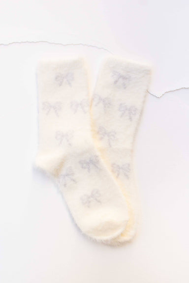 Wrap your feet in cloud-soft comfort with the Fluffy Bow Knit Socks. Designed with a plush, fuzzy texture and an all-over bow pattern, these cozy s...