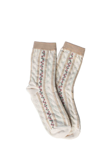 Add a touch of vintage charm to your everyday look with the stripe floral socks. Featuring delicate embroidered-style floral patterns running down ...