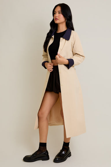 This camel-hued trench coat combines timeless style with a fresh edge, instantly enhancing your wardrobe. Featuring a soft yet structured design, a...