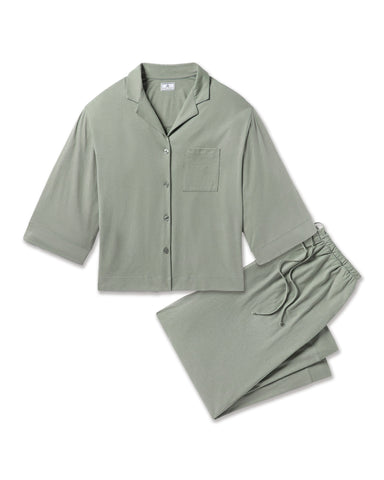 A cozy, relaxing new shade of buttery soft Pima pajamas. This peaceful sage green will be an instant sleepwear staple. Our wide-leg Pima Cotton paj...