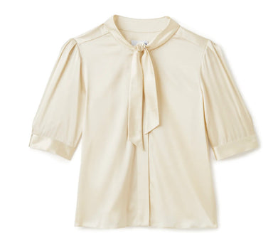 Crafted from silk charmeuse satin, this blouse offers a smooth, flowing silhouette. It features a sleek hidden placket complemented by self-tie nec...