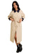 This camel-hued trench coat combines timeless style with a fresh edge, instantly enhancing your wardrobe. Featuring a soft yet structured design, a cinched belt waist, and practical pockets, it pairs effortlessly with jeans, dresses, or tailored ensembles. Balancing classic charm with contemporary flair, this coat is the versatile staple you'll want to wear season after season.