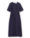 Crafted from a rayon blend crepe, this dress features delicate lace trim along the raglan seams for a touch of elegance. Designed with elbow-length sleeves and a fitted bodice, it accentuates your waist beautifully. The column skirt includes a front slit and practical patch pockets, combining style with functionality.