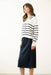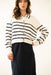 Experience the cozy softness of this knit cardigan featuring a relaxed, elegant drape. Its ivory background accented by striking navy horizontal stripes delivers a classic nautical style. The polished button-front and collar add structure, while ribbed cuffs and hem ensure a comfortable fit.
