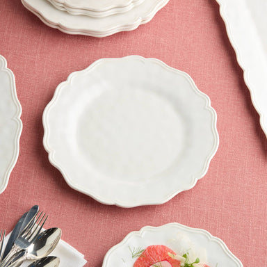 The Isabella Cream Melamine Salad Plate adds rustic charm with its 9-inch size, soft cream color, and scalloped edges. Its vintage crackle finish s...