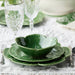 Sculptural 11-inch ceramic dinner plate shaped like a cabbage leaf with rich green glaze and hand-detailed white veining. Raised edges and textured contours provide practical depth while creating visual interest. Ideal for entrees, vegetables, or seasonal dishes, this distinctive plate elevates everyday meals and special occasions alike with garden-inspired artistry and timeless style.