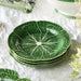 Artfully molded 9-inch ceramic salad plate with a textured, cabbage-leaf design in vibrant green glaze and white veining. Raised edges keep food beautifully contained while adding visual depth and botanical charm. Perfect for salads, appetizers, or desserts, this sculptural plate works as both functional serveware and a striking table accent that celebrates organic beauty and craftsmanship.