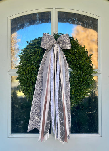 The Snow Château Wreath Ribbon set brings an elegant, wintery touch to any holiday wreath. This handcrafted bow features either a richly embroider...