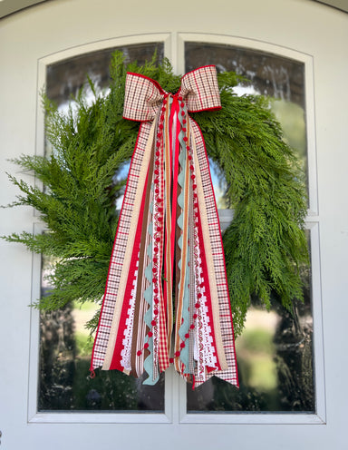 Add a timeless touch to your holiday décor with this classic red tartan wreath bow. Each bow is crafted from high-quality fabric to hold its shape ...