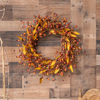 Celebrate the vibrant spirit of autumn with this striking 24″ Preserved Oak Leaves Wreath in brilliant shades of golden yellow. Each piece is thoug...