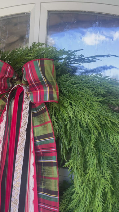 Dress up your holiday greenery with the timeless charm of our Plaid Tidings Wreath Ribbon. A classic mix of festive red, green, and gold plaid pair...