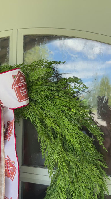Gingerbread Cottage Wreath Ribbon brings all the cozy, cookie-shop charm to your front door. A generous bow tops long ribbon tails in warm gingerb...