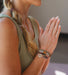 The Breathe set includes five hair tie bracelets in colors that will soothe the soul and remind us to just be still. The lotus flower charm and earthy stone beads are beautiful and calming accents for this yoga inspired set.