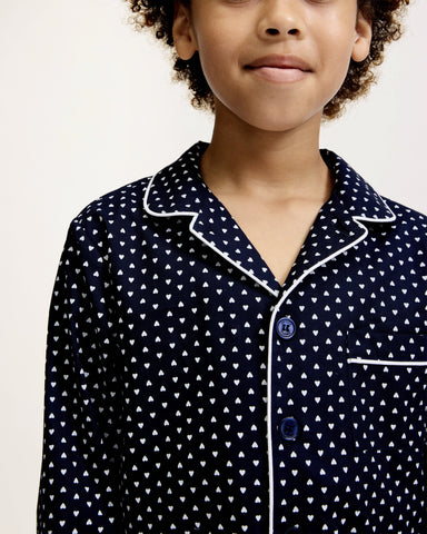 Like joyful confetti, the little pink hearts dance across the fabric as if batting their eyelashes. This classic pajama set is accented with pink p...