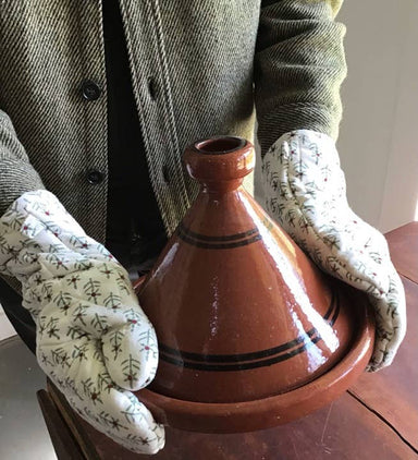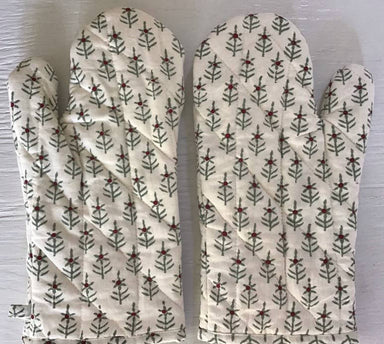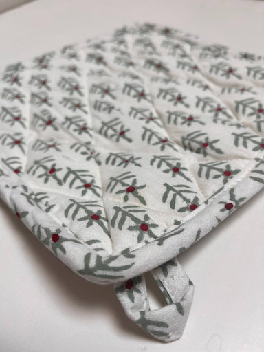Crafted from hand block printed cotton, the Holiday Winterberry Green Oven Mitt combines festive style with practical kitchen protection.