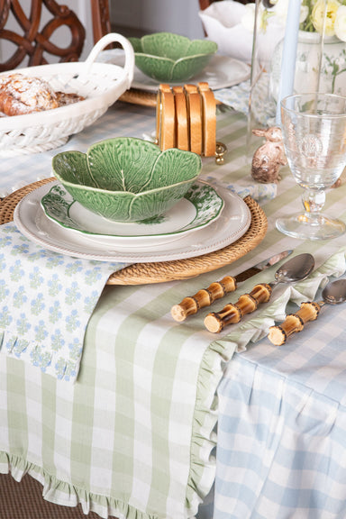 This classic gingham table runner is embellished with a ruffled edge for a touch of romantic country charm and easy elegance that’s perfectly lovel...