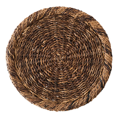Tightly hand-woven rustic fibers create a rustically handsome charger that makes a quiet statement. 15.0"L x 15.0"W x 0.5"H