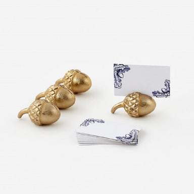 Celebrate the essence of Fall with this elegant Acorn Place Card Holder Set. Featuring a gold finish, this set includes 4 holders and 16 place card...