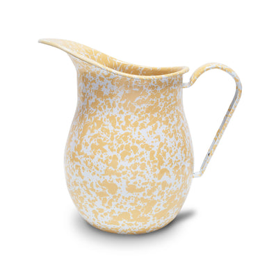 Perfect for hosting gatherings, this striking yellow and white splatter enamelware pitcher holds a generous 3 quarts—ideal for serving beverages, l...