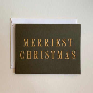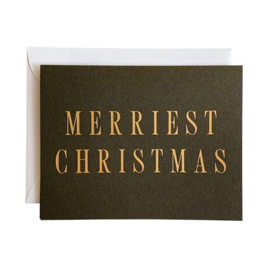* A2 Folded 4.25" L × 5.5" W * "Merriest Christmas" * Available in Moss or Chestnut Cover Stock * Gold Foiled * Natural Envelope * Blank...