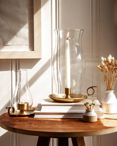Embrace the nostalgic feeling this subtle light of our Windsor Hurricane emits. The brushed, matte brass and the sparkling glass are perfect compli...