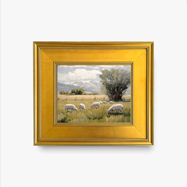 Immerse yourself in the beauty of nature with this stunning Gathering of Sheep oil painting giclee. Capturing the peaceful scene of sheep grazing i...