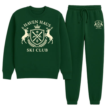 Meet your new winter uniform. Our Haven Haus Ski Club sweat set is crafted in a rich forest green and finished with a crisp cream screen print. Des...