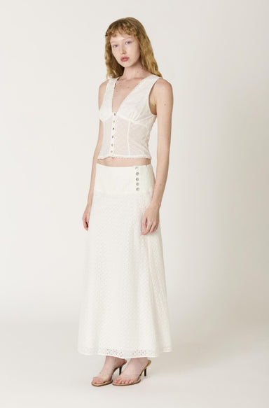 Soft structure meets quiet elegance in the Heidra Eyelet Midi Skirt, a piece designed to feel both feminine and effortless. The delicate eyelet fab...