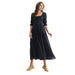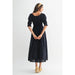 Navy Smocked Midi Dress with Pleated Skirt