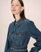 The Shanie long shirt dress is crafted from denim fabric. This piece features a straight cut with a removable belt and a horn-effect buckle that highlights the waist. This denim dress has ruffled buttoned cuffs that add a delicate touch to the utilitarian look. The flap patch pockets and front button opening elegantly combine style and functionality.