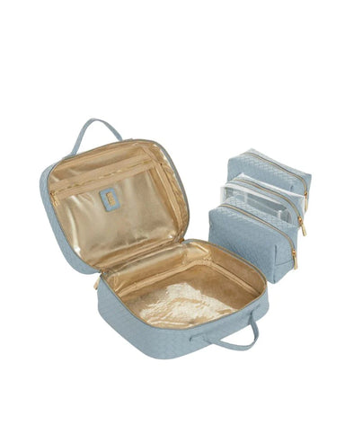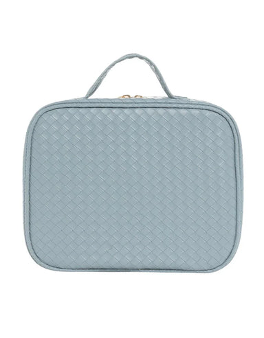 Woven Bleu Cosmetic Case- a larger design and new interior made in textured vegan woven exterior and coated gold interior - bigger is better! Featu...