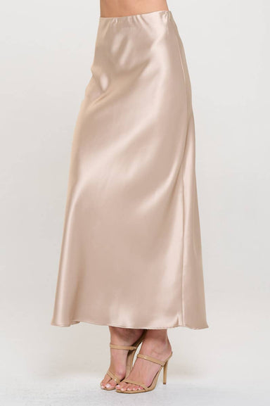 Experience effortless elegance with the beige Silky Satin Maxi Skirt. Crafted from smooth, flowing satin, this skirt drapes beautifully for a flatt...