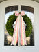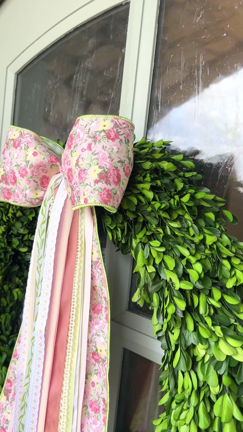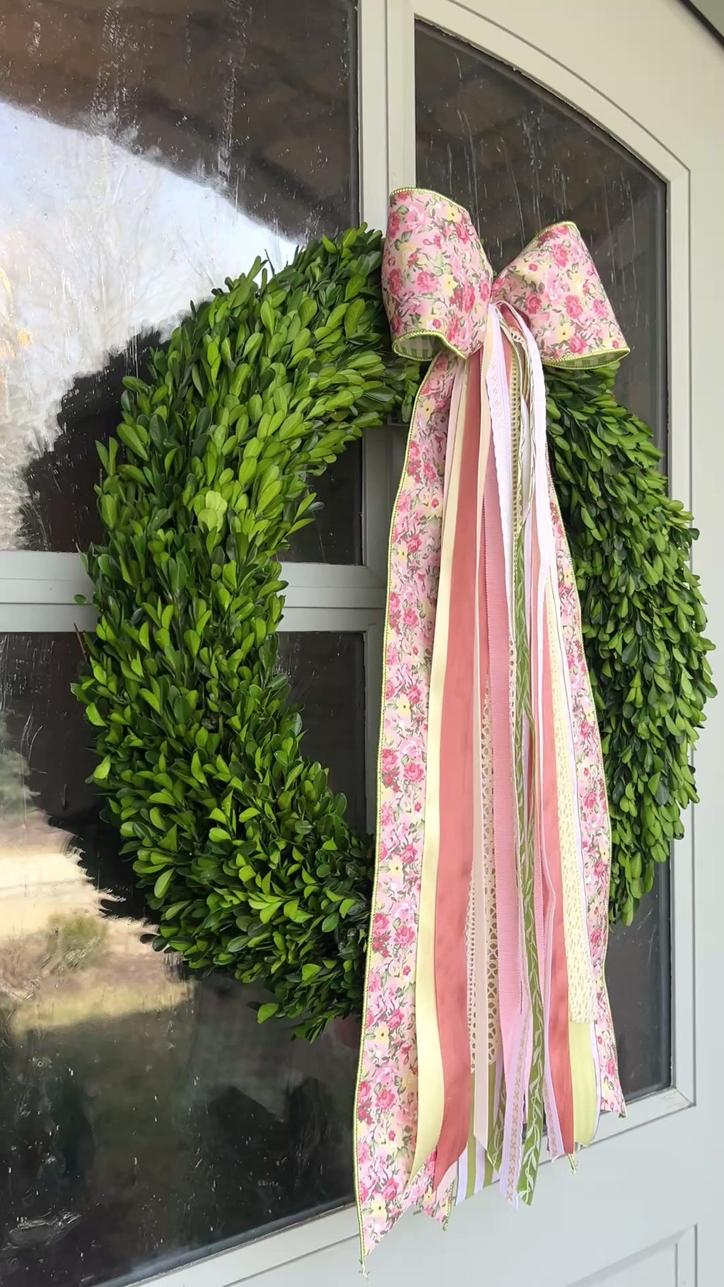 English Rose Wreath Ribbon brings a romantic, garden-inspired charm to your front door with delicate rose prints layered alongside soft blush, butter yellow, and fresh green accents. The structured bow anchors flowing ribbon tails in a thoughtful mix of patterns and textures—from vintage-style roses to airy stripes and botanical details—creating a look that feels collected, feminine, and timeless.