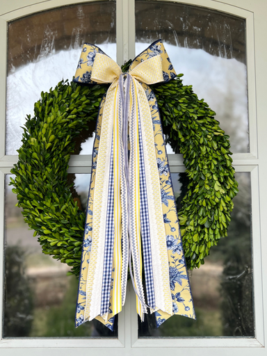 Add a timeless touch to your décor with the Large Heritage Blue Toile Bow, handcrafted from cotton exclusive to Haven Haus. This oversized bow ties...