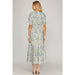 Discover effortless elegance with this charming tiered midi dress, featuring a delicate floral print on soft woven fabric. The flattering V-neckline and short sleeves offer a refined silhouette perfect for any occasion, while practical pockets add everyday functionality. Layer it with your favorite cardigan or wear it solo for a polished, versatile look that transitions seamlessly from day to evening.